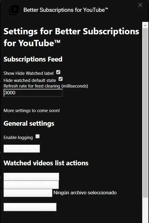 Pour commencer, nous parlerons de l’extension appelée Better Subscriptions for Youtube, un élément qui est chargé de nous faciliter la navigation sur le réseau d’abonnement YouTube en masquant les vidéos vues. Ainsi, il présente un interrupteur dans l’ abonnement qui nous permet de choisir si nous voulons que les vidéos déjà vues réapparaissent ou non.