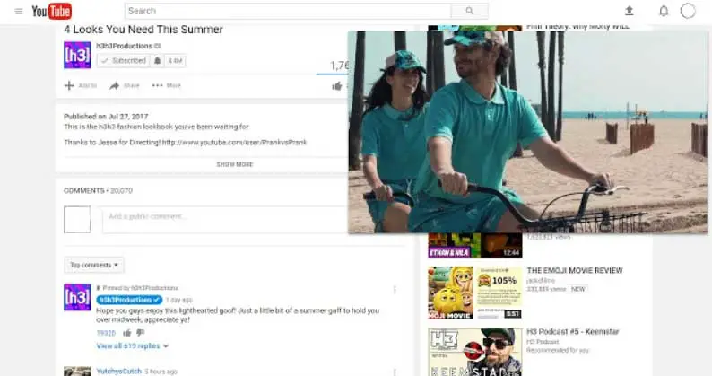 Vidéo flottante pour YouTube
