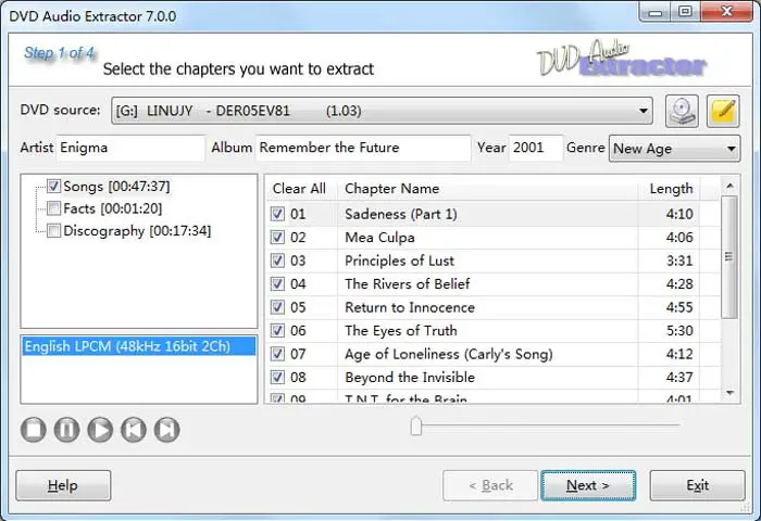 Ce programme vous permet également de diffuser de l’audio directement sur des fichiers MLP, PCM, MPA, AC3 ou DTS . En outre, il dispose d’une fonction d’imagerie CD unique qui vous permet de convertir un DVD en CD audio ou DTS-CD en une seule étape. Son interface est facile à utiliser, sa vitesse d’extraction est très rapide et il prend en charge les formats audio riches.