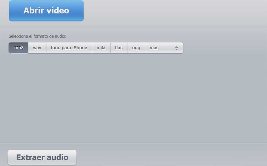 Il s’agit d’une autre solution puissante qui, comme son nom l’indique, nous aidera à extraire l’audio d’une vidéo. Le programme se distingue par sa simplicité d’utilisation et sa compatibilité avec le format MP3 étendu pour obtenir le fichier souhaité. En même temps, nous avons la possibilité de télécharger tout type de vidéo et le processus est effectué rapidement. Bien sûr, la taille de la vidéo elle-même entre également en jeu ici.