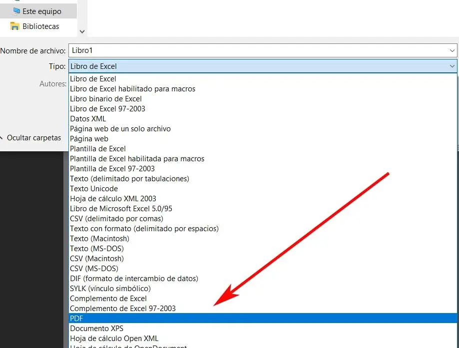 La solution à ce petit problème dont nous parlons est de sauvegarder nos feuilles Excel dans un format différent de celui habituel. Avec cela, ce que nous voulons vous dire, c’est que dans le processus de sauvegarde, nous optons pour le format PDF au lieu de celui utilisé par défaut.