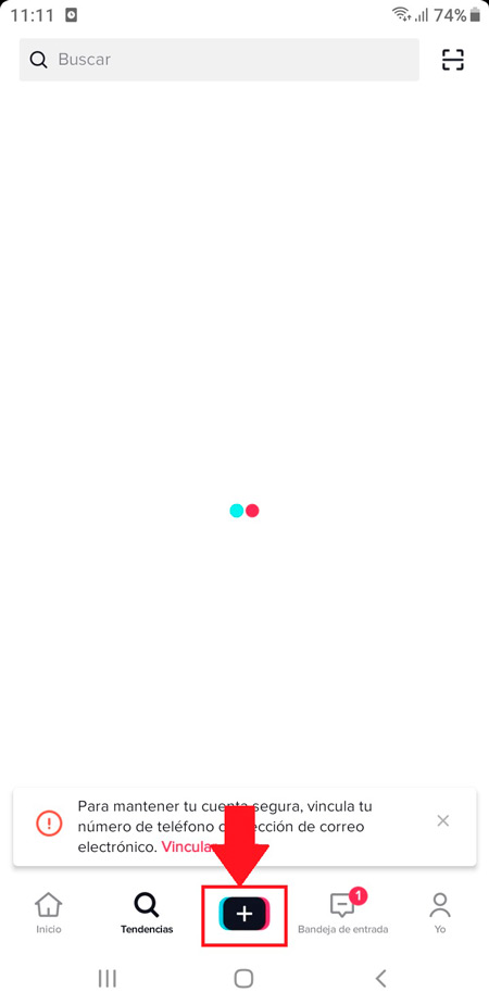 - Pour démarrer cette procédure, la première chose à faire est d’ entrer TikTok via votre application mobile, depuis l’écran principal, vous devez cliquer sur le signe «+» qui apparaît en bas de votre écran.