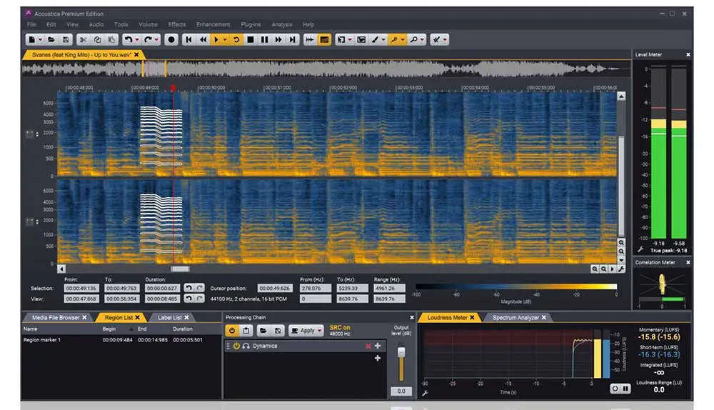 C’est un logiciel de traitement audio puissant pour les professionnels et les débutants. Il prend en charge les formats audio jusqu’à 384 KHz / 32 bits, ainsi que la fonction Assistant de nettoyage pour une numérisation facile des bandes sonores et du vinyle. Il a également une fonction de réduction du bruit associé à la sélection de fréquence et de temps, ainsi qu’un générateur DC intégré. Il prend en charge les formats audio tels que WAV, WAV64, MP4, AIFF, MP3, OGG, FLAC et WMA.