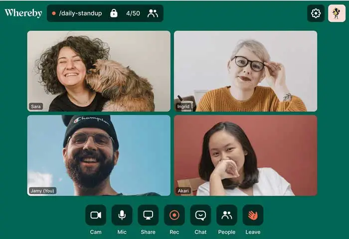 Si nous voulons accéder aux services de Whereby, nous pouvons opter pour sa version gratuite avec laquelle nous aurons une salle quand nous le voudrons, pouvant accéder jusqu’à 4 participants. Il dispose également d’un service de paiement que nous pouvons acheter à partir de 9,99 $ par mois.