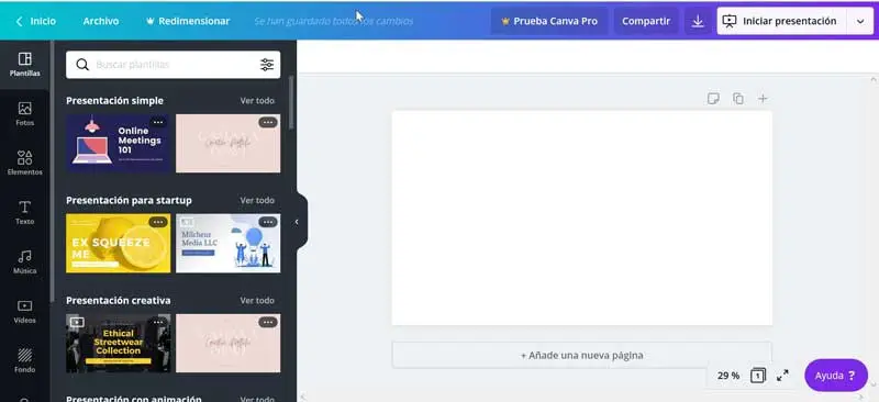 Canva a une version gratuite à laquelle nous pouvons accéder à partir d’ ici . Une version Pro payante est également disponible pour 8,99 euros par mois. Il contient plus de 4 millions de photos et d’éléments, plus de 1000 polices, un kit de marque, des dossiers illimités entre autres fonctions. Il vous permet également de télécharger une version d’essai de 30 jours.