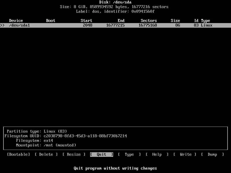 À ce stade, nous n’avons qu’à monter la partition que nous venons de créer. Pour cela, nous allons simplement exécuter la commande suivante: