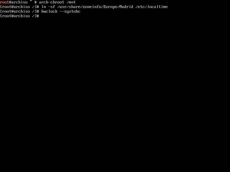 Et nous rentrons dans chroot avec la commande «arch-chroot / mnt» pour procéder à sa configuration. Une fois à l’intérieur de chroot, nous exécuterons la commande suivante: