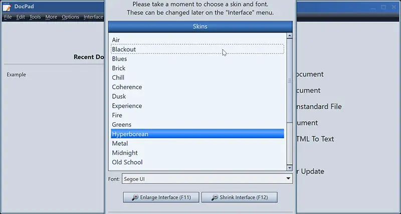 Dans l’onglet Plus, nous aurons des fonctions telles que télécharger des paragraphes en double, insérer une tabulation et une heure, un saut de ligne, inverser tous les paragraphes, inverser tous les caractères et mélanger tous les paragraphes. Dans la section Interface , nous aurons toutes les options de personnalisation avec différents skins à choisir. Nous trouvons également l’option «Color Picker», où nous pouvons choisir n’importe quel type de couleur pour notre interface. Il a également une option de préférence avec différentes fonctionnalités que nous pouvons marquer ou décocher selon que nous voulons qu’elles soient actives ou non.