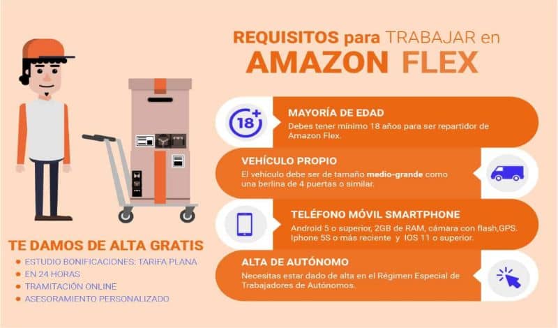 D’autre part, le service Amazon Flex en Espagne a servi d’option de revenu supplémentaire pour ceux qui souhaitent travailler pour Amazon. Les exigences pour travailler dans Amazon Flex sont très peu nombreuses mais très importantes.