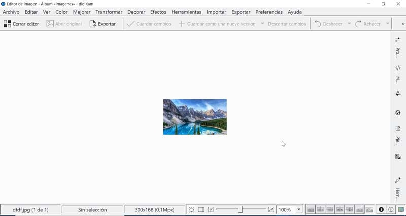 Une fois qu’une photo a été sélectionnée, nous pouvons cliquer sur le bouton Éditeur d’ image , où un nouvel écran apparaîtra à partir duquel nous pouvons apporter différentes corrections à l’image. En haut, nous trouverons des fonctions telles que Améliorer, Transformer, Décorer, Effets et Outils avec lesquels traiter l’image jusqu’à ce que le résultat souhaité soit atteint. Une fois terminé, dans l’onglet Exporter, nous pouvons envoyer notre image vers un stockage local ou des systèmes de stockage en nuage tels que Google Drive, Google Photos, Facebook, Dropbox, entre autres options.