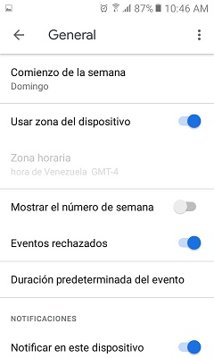 Une fois que cela est fait dans les «Paramètres du calendrier», nous allons dans la zone des notifications.