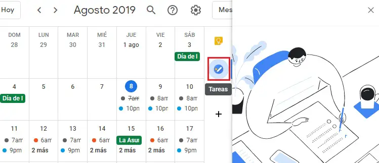 Dans la version Web de la barre mince sur le côté droit se trouve l’option «Tâches», avec laquelle nous pouvons attribuer une liste de petites tâches.