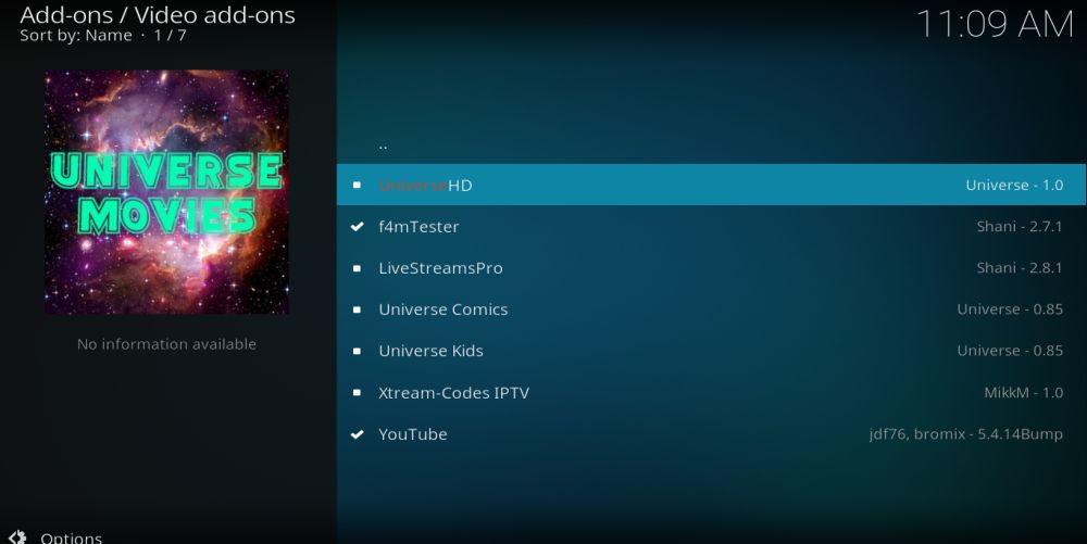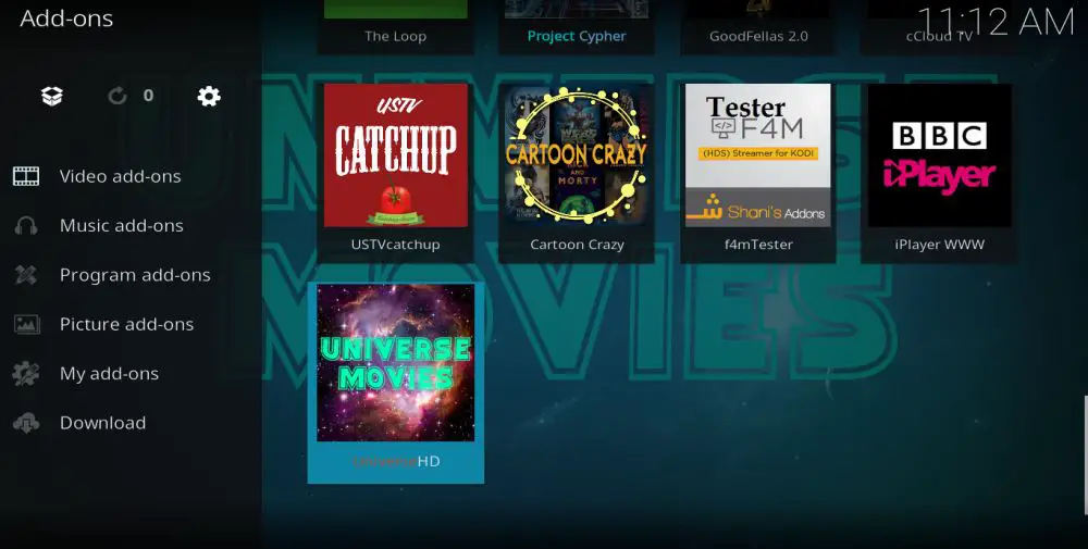 - Revenez à l’écran d’accueil de Kodi et sélectionnez Modules complémentaires. Le plugin Universe HD sera désormais inclus dans Video Plugins et vous êtes prêt à profiter de films HD de haute qualité.