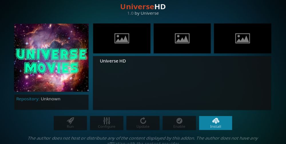 - Ouvrez le référentiel et sélectionnez Video Select UniverseHD, qui devrait apparaître en haut de la page, puis cliquez sur installer et le module complémentaire sera téléchargé et installé sur votre Kodi. Vous verrez à nouveau une notification en haut à droite de l’écran une fois son installation réussie.