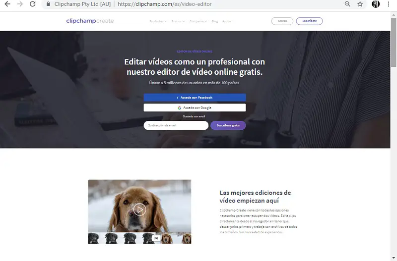 Bien entendu, lorsque vous souhaitez accéder à la page, il vous demandera une inscription afin que vous puissiez accéder à sa plateforme, cela peut être fait avec votre email ou avec Facebook. La page a une version gratuite et une version Premium, mais ne vous inquiétez pas, la première est géniale et super complète lors de l’édition.