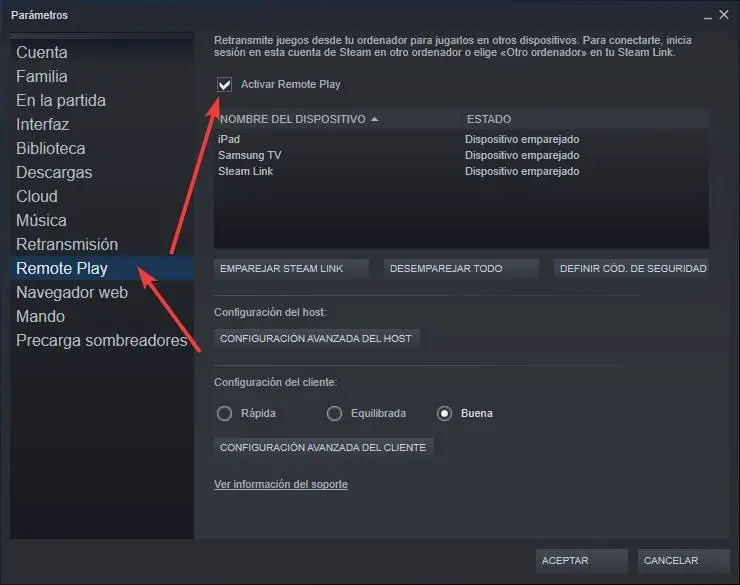 Il ne faut pas confondre la fonction Remote Play Together avec Remote Play . Alors que la première est celle qui nous permet de jouer à des jeux multijoueurs locaux avec d’autres personnes sur Internet, la seconde est la fonction qui nous permet de jouer à distance (depuis un autre PC, une SmartTV, depuis notre mobile, avec Steam Link, etc.) aux jeux qui fonctionnent sur notre PC. Bien sûr, Play Together est comme une extension, un module, de Remote Play.