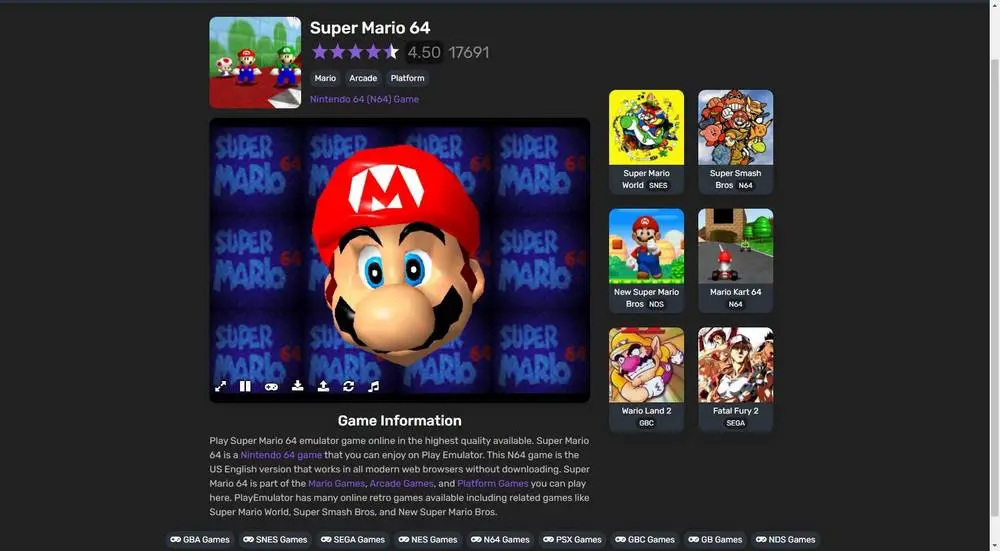 Les roms Nintendo 64 sont assez faciles à trouver en ligne, bien que la firme n’y soit pas particulièrement favorable, puisqu’elle donne une seconde vie à de nombreux jeux grâce à des «remakes». Ces roms ont généralement une extension .z64. Le plus important lors de la recherche d’un bon émulateur N64 est qu’il vous permet de mapper facilement les contrôles, car le contrôle de cette console était particulièrement compliqué.