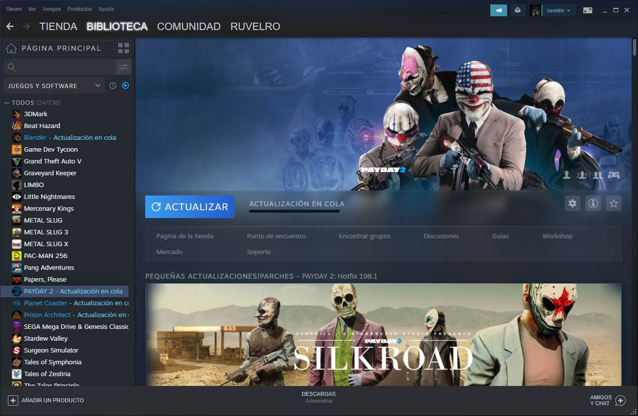 Nous enregistrons les modifications et c’est tout. À partir de maintenant, les jeux cesseront de se mettre à jour automatiquement lorsqu’il y aura de nouvelles versions. Comme nous pouvons le voir, lorsque nous entrons dans le client, un message apparaîtra dans chaque jeu avec une mise à jour qui indiquera qu’il y a une mise à jour. Et en entrant dans le jeu, nous pouvons voir un bouton qui, au lieu de jouer, indique la mise à jour.