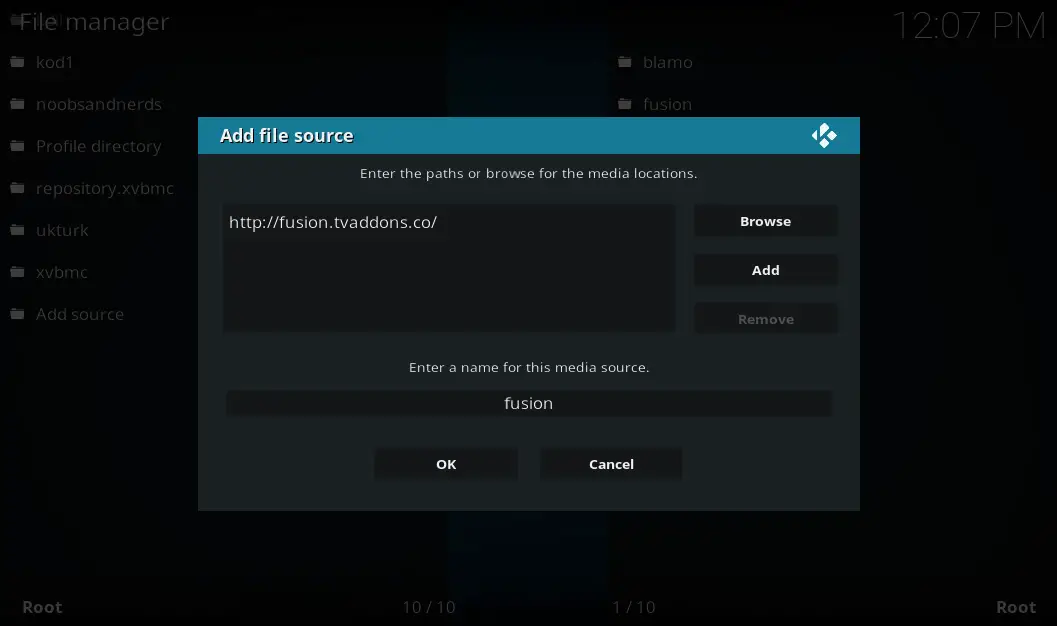 5. Entrez l’url suivante: https://fusion.tvaddons.co Veillez à inclure https: // ou cela ne fonctionnera pas correctement