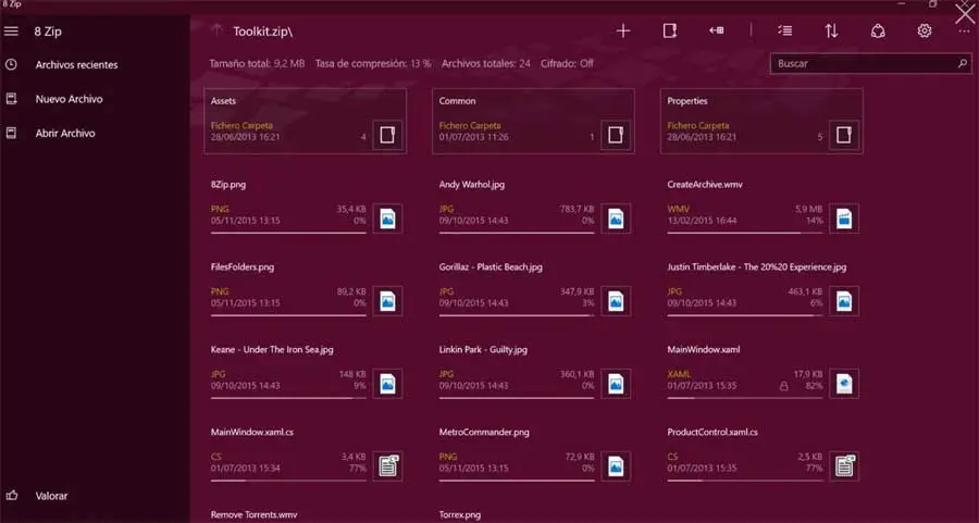 Sans aucun doute, l’une des meilleures applications UWP pour décompresser des fichiers dans plusieurs formats (tels que Zip, RAR et 7Zip) est BreeZip. Cette application nous permet d’ouvrir tout type de fichier, de le parcourir et même d’ouvrir les fichiers dans le fichier compressé lui-même sans avoir à extraire tout son contenu.