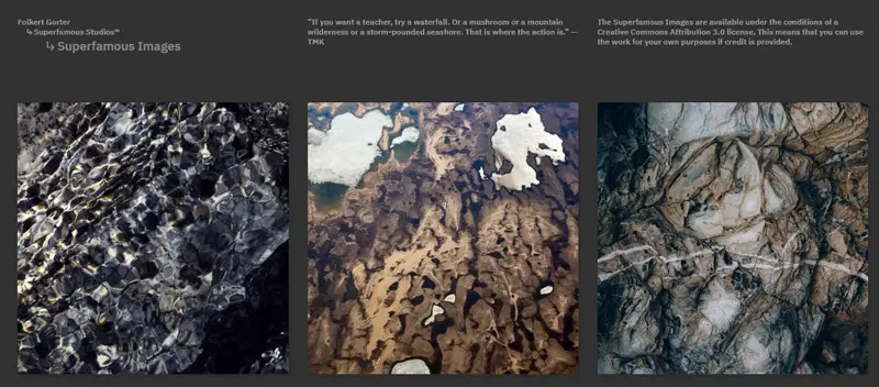 C’est une banque d’images gratuite et un peu simple, car elle est basée uniquement sur des photographies de paysages . Donc si vous êtes un amoureux de ce type d’illustration ou surtout, vous en avez besoin pour votre site web ou un projet spécifique, Superfamous Images est la meilleure option pour vous . Sachant que toutes les images qui y sont publiées sont sous licence CCA 3.0 .