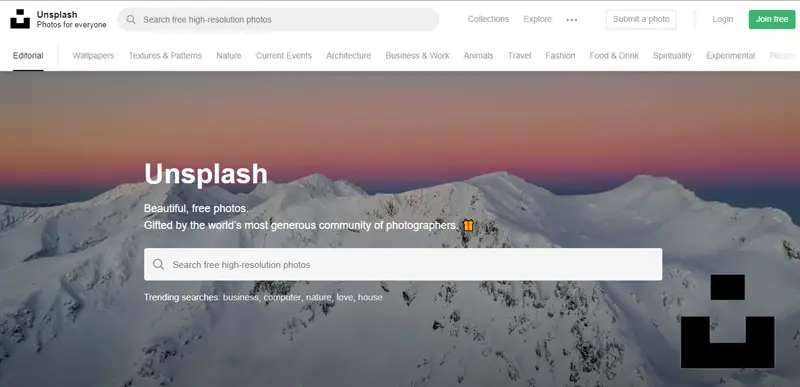 Pour commencer, nous vous recommandons cette banque d’images totalement gratuite , considérée comme l’une des plus célèbres, grâce à la haute qualité de ses photos étant en haute résolution. Principalement, Unsplash propose à tous ses utilisateurs , des photographies de paysages qui peuvent être copiées, distribuées, modifiées et utilisées sans demander le droit d’auteur . C’est donc une plateforme libre de droits que vous pouvez utiliser sans aucun problème de ce type, même pour des questions commerciales.