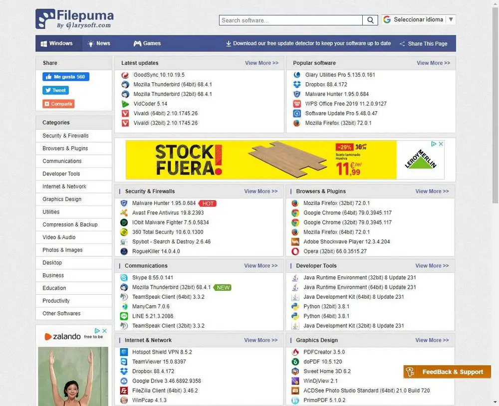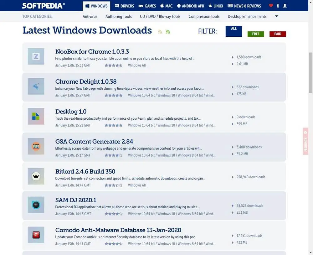 Softpedia est ce que Softonic était en Espagne à son époque. C’est l’un des plus grands sites où l’on peut trouver pratiquement n’importe quel type de programme. Sa base de données compte près d’un million de programmes enregistrés, elle dispose d’un moteur de recherche de logiciels puissant et simple et les téléchargements, en plus d’être vérifiés et fiables, sont à jour.