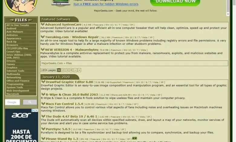 Si nous recherchons un site Web avec des applications de haute qualité, MajorGeeks est l’un des meilleurs. Sur cette page Web, nous trouverons toutes sortes de programmes gratuits de qualité. Ses éditeurs vérifient que les téléchargements sont légitimes, fiables et sûrs avant de les proposer aux utilisateurs.