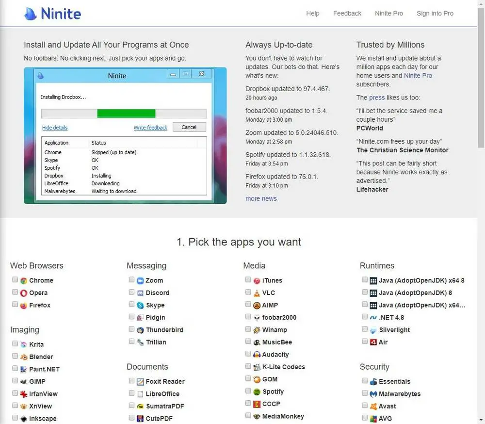 Nous pouvons accéder à Ninite à partir du lien suivant vers son site Web .