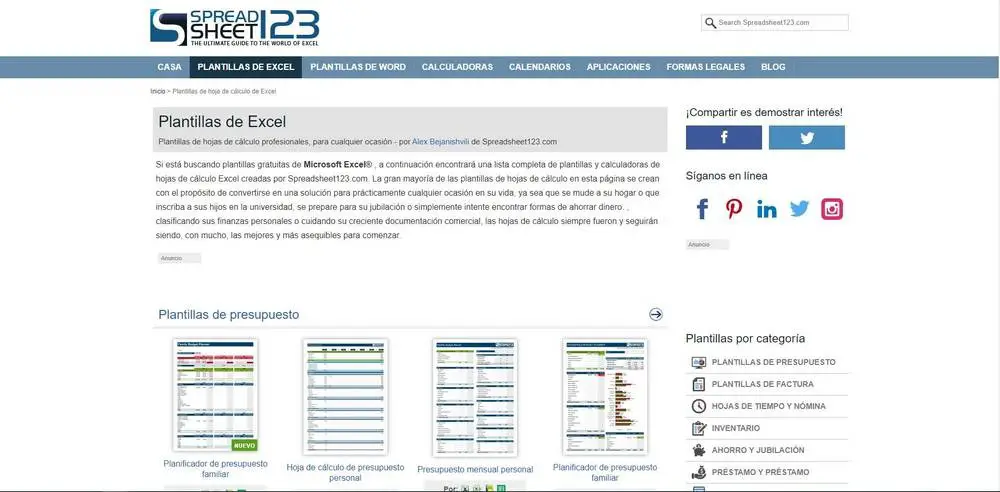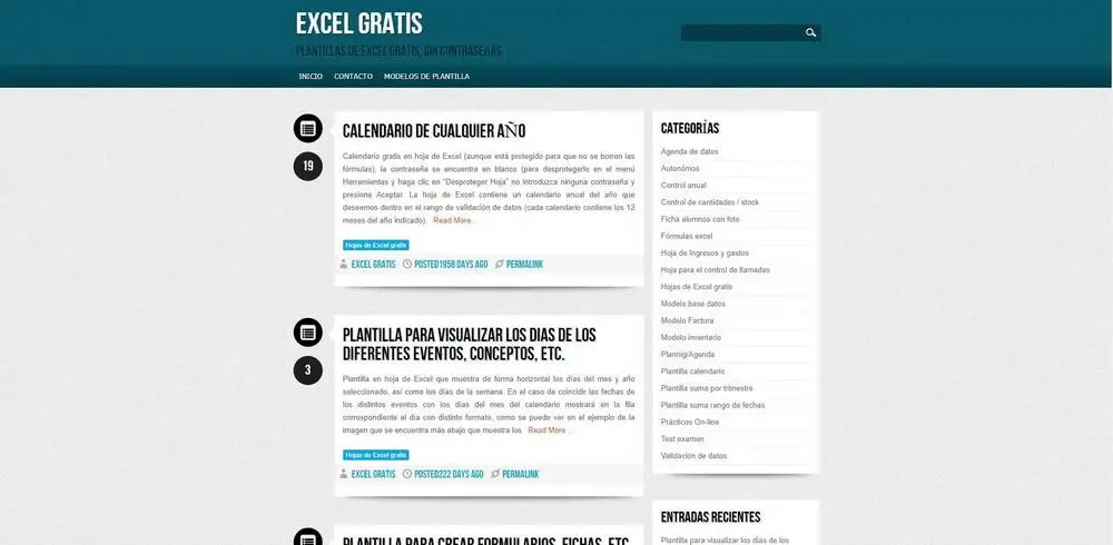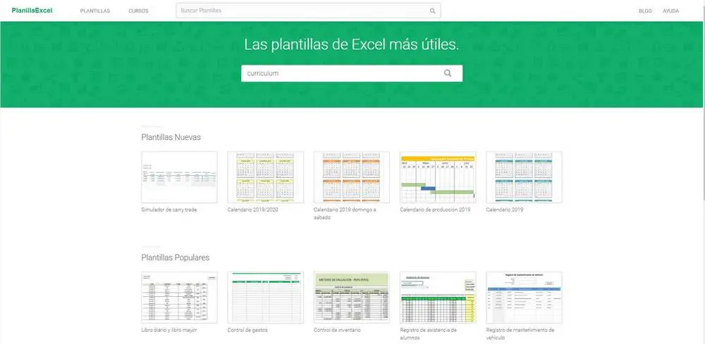 Un excellent site Web pour rechercher des modèles, dans ce cas Excel. On distingue un grand nombre de modèles qui sont organisés en catégories. Grâce à sa conception, il ne nous sera pas difficile de trouver celui qui correspond à nos besoins, car il est simple et bien organisé.