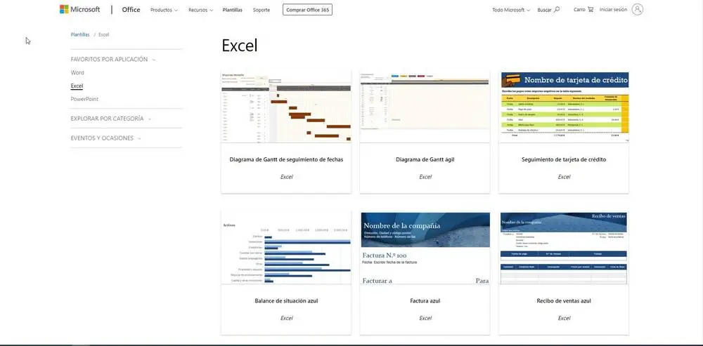 Une page où nous pouvons trouver des modèles, qui sont très bien conçus et correctement fonctionnels, se trouve sur la page officielle du bureau. Dans lequel nous avons de nombreux modèles, conçus pour chaque outil que contient votre suite, mais dans ce cas, nous nous concentrons sur Excel.