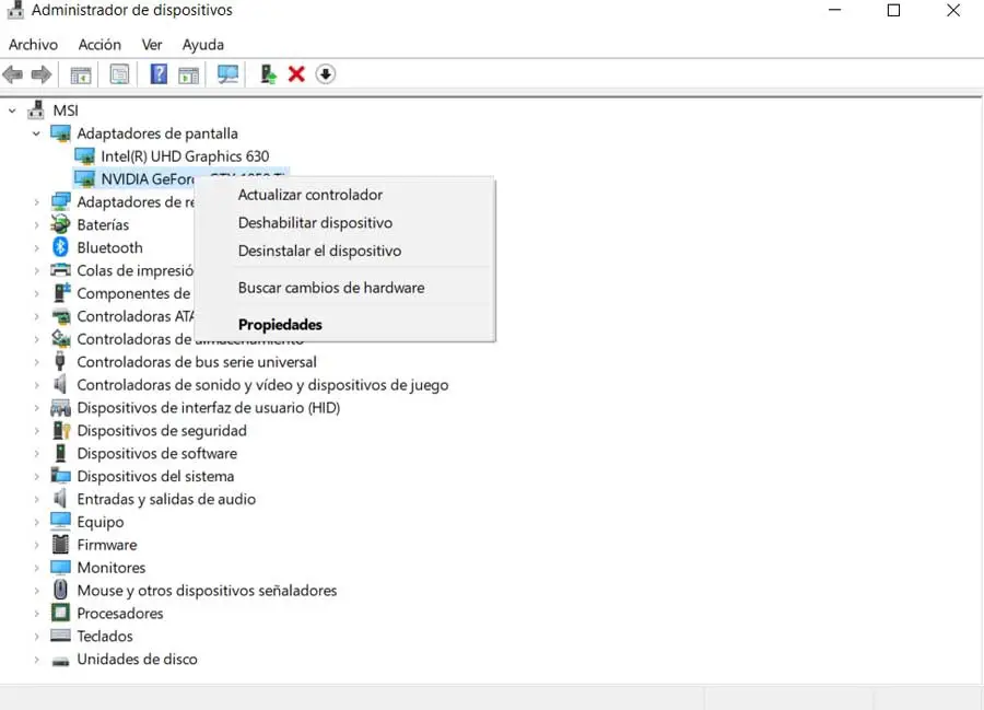 Par conséquent, à ce stade, il existe plusieurs solutions que nous pouvons utiliser pour essayer de résoudre ce problème inconfortable avec les vidéos. Tout d’abord, nous vous dirons que le bégaiement est quelque chose qui peut être dérivé des pilotes graphiques eux – mêmes , nous devons donc les mettre à jour. C’est quelque chose que nous réalisons à partir du Gestionnaire de périphériques auquel nous accédons à partir du bouton droit du menu Démarrer.