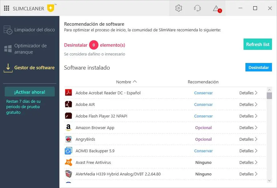 Le dernier utilitaire, «gestionnaire de logiciels», nous permet de voir quels logiciels nous avons sur l’ordinateur et, suivant les recommandations de la communauté des utilisateurs, recommande sa désinstallation ou non en suivant la classification précédente.