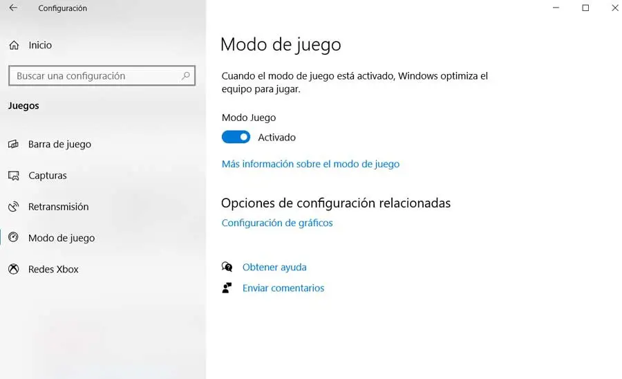 Mais Windows 10 n’est pas la seule aide qu’il nous offre dans ce même sens, du moins dans ses versions les plus récentes. C’est pourquoi ici nous voulons également faire une mention spéciale du mode de jeu qui intègre le système d’exploitation lui-même. Il s’agit d’un mode essentiellement axé sur l’ optimisation du fonctionnement de l’ordinateur lorsque nous jouons sous Windows. De cette façon, nous verrons de première main que l’expérience de pouvoir jouer sur PC et sur le système Redmond, s’améliore ostensiblement.