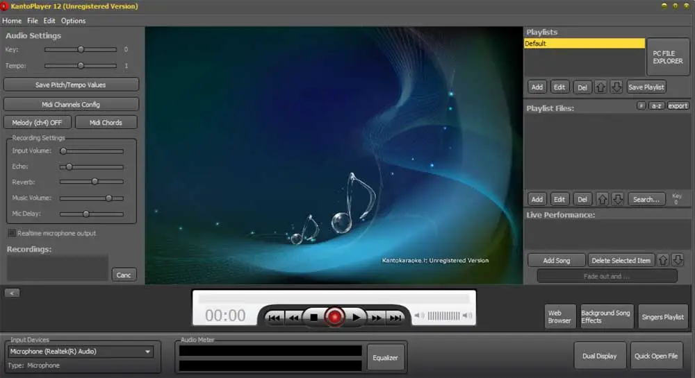Ahora os hablaremos de Kanto Karaoke, otro software de este tipo tanto para equipos MacOS como Windows, muy ligero y que ocupa poco espacio en disco. Nos referimos en este caso concreto a una aplicación que hace las veces de reproductor de karaoke, además de poder grabar nuestras canciones cantadas. Decir que tiene soporte para la mayoría de los formatos tanto de audio como de vídeo actuales como .kar, .mid, .mp3, avi, .mpeg, o .wmv, entre otros.
