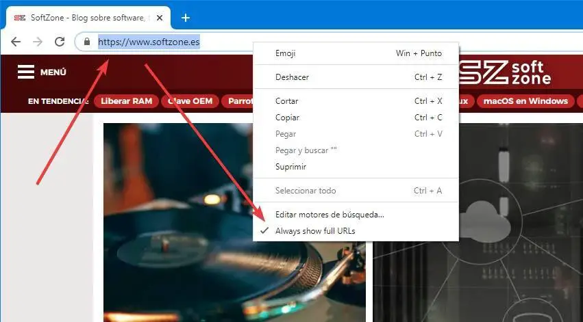 Si nous cliquons dessus, nous l’activerons. Et, de cette façon, nous recommencerons à voir les URL complètes lors de la visite d’une page Web.
