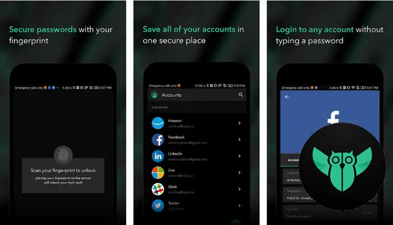 Il vous permet également de vous connecter à n’importe quel compte avec votre empreinte digitale, il n’y a donc pas de mot de passe principal à retenir. Cette application stocke toutes les informations privées avec le cryptage AES256 et PBKDF2 .