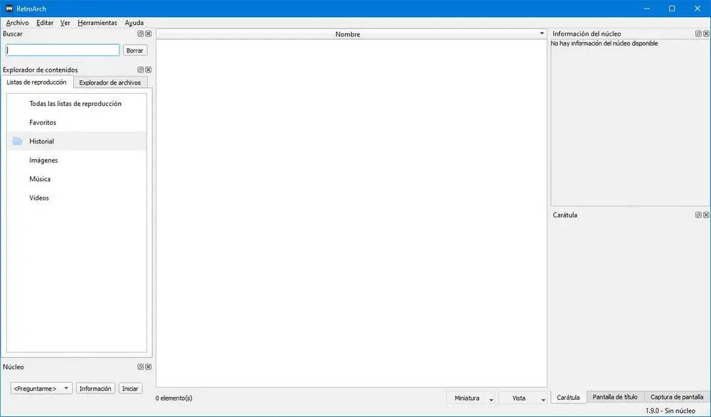 RetroArch a sa propre interface très similaire à celle d’une console. Cependant, il existe également un » mode fenêtre » conçu, avant tout, pour gérer facilement tout le contenu (c’est-à-dire les jeux) que l’on ajoute au programme. Pour y arriver, il faut appuyer sur la touche F5 depuis l’interface principale du programme, et on pourra voir une fenêtre comme la suivante.