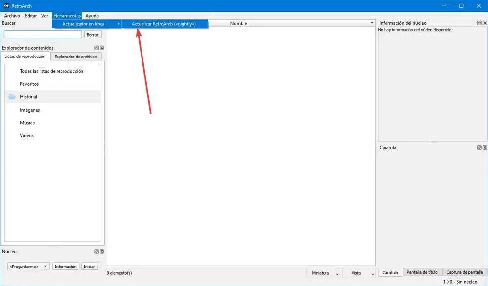 Ce processus ne fait que mettre à jour l’émulateur, mais ne le noyau pas. En fin de compte, ces cœurs sont la partie la plus importante de RetroArch, car ce sont eux qui sont chargés d’ouvrir les jeux. Bien que la mise à jour du programme ne soit pas très archaïque, le logiciel lui-même a ses options correspondantes pour télécharger et mettre à jour les cœurs et autres éléments liés à la rétro-émulation.
