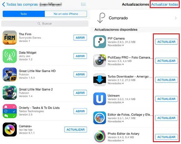 - Dans le menu du haut, sélectionnez l’option » Mises à jour «. Une liste de toutes les applications qui doivent être mises à jour apparaîtra ci-dessous. S’il n’y avait aucune attente, un message apparaîtrait où il est dit « Toutes les applications sont mises à jour .