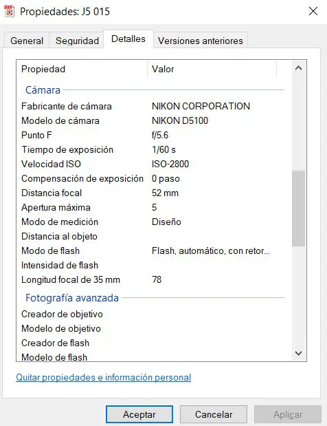 Parmi les nombreuses informations de ce type qui sont jointes, vous pouvez connaître notre situation physique exacte, le logiciel avec lequel nous travaillons, le dispositif de capture que nous transportons, etc. C’est quelque chose que nous ne voudrons pas toujours être disponible pour quiconque avec qui nous partageons ces fichiers. C’est pourquoi peut-être le plus recommandé si nécessaire, est de pouvoir éditer ou simplement supprimer les métadonnées susmentionnées, avant de les partager sur Internet .