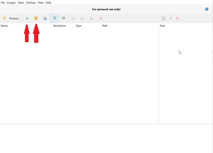 Une fois que nous exécutons le programme pour la première fois, nous trouvons son menu principal avec une interface simple visuellement peu attrayante , qui, bien qu’elle ne soit disponible qu’en anglais, n’est pas compliquée à gérer, car tous les processus sont assez intuitifs. En haut, nous trouvons une barre d’outils avec différentes icônes pour effectuer nos tâches. Pour commencer, nous devons ajouter notre dossier d’images avec lequel nous allons travailler. Pour ce faire, nous pouvons cliquer sur l’icône «plus» (+) pour ajouter une image ou cliquer sur l’icône de dossier pour ajouter un dossier contenant toutes les images.