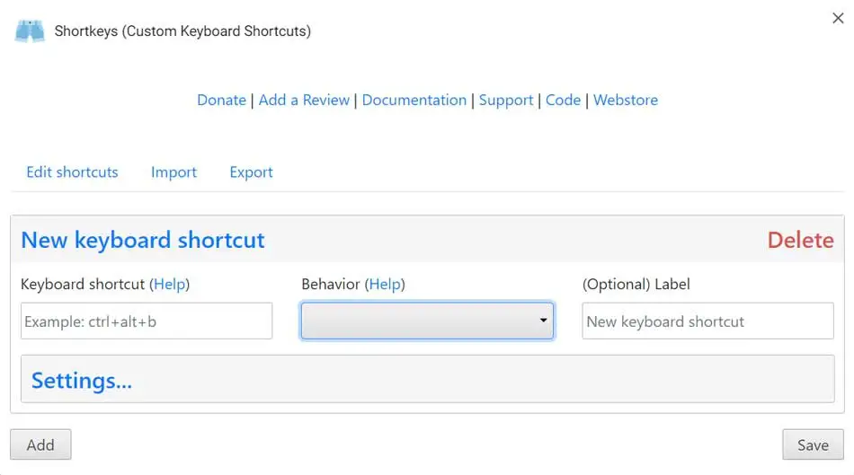 On peut dire que créer un nouveau raccourci clavier avec cette extension est assez simple. Tout d’abord, il suffit de remplir le champ Raccourci clavier dans lequel nous saisissons la combinaison souhaitée. Ensuite, nous devrons choisir l’une des actions disponibles dans la liste déroulante de la section Comportement. En outre, nous pouvons éventuellement ajouter une balise pour nous aider à identifier le raccourci plus rapidement à l’avenir.