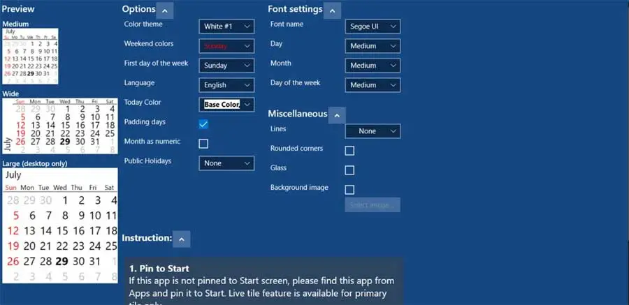 Cette proposition dont nous parlons maintenant, sera la plus appropriée pour avoir notre propre calendrier personnel sur l’écran de démarrage de Windows . Il génère un calendrier d’un mois en tant qu’application Live Tile. De cette façon, nous aurons la possibilité de personnaliser la police, la taille, les lignes et la couleur de l’ensemble, entre autres.