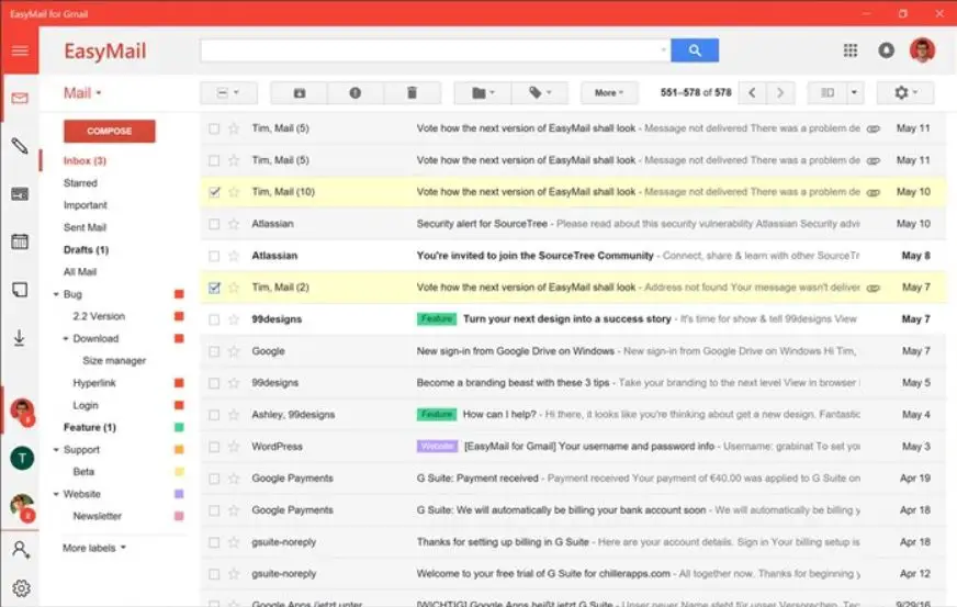 Beaucoup d’entre nous peuvent voir l’application Courrier et Calendrier comme une seule, bien qu’il s’agisse en fait de deux applications différentes. Il est donc juste de commencer avec une alternative deux en un comme celle de Microsoft. C’est EasyMail pour Gmail .