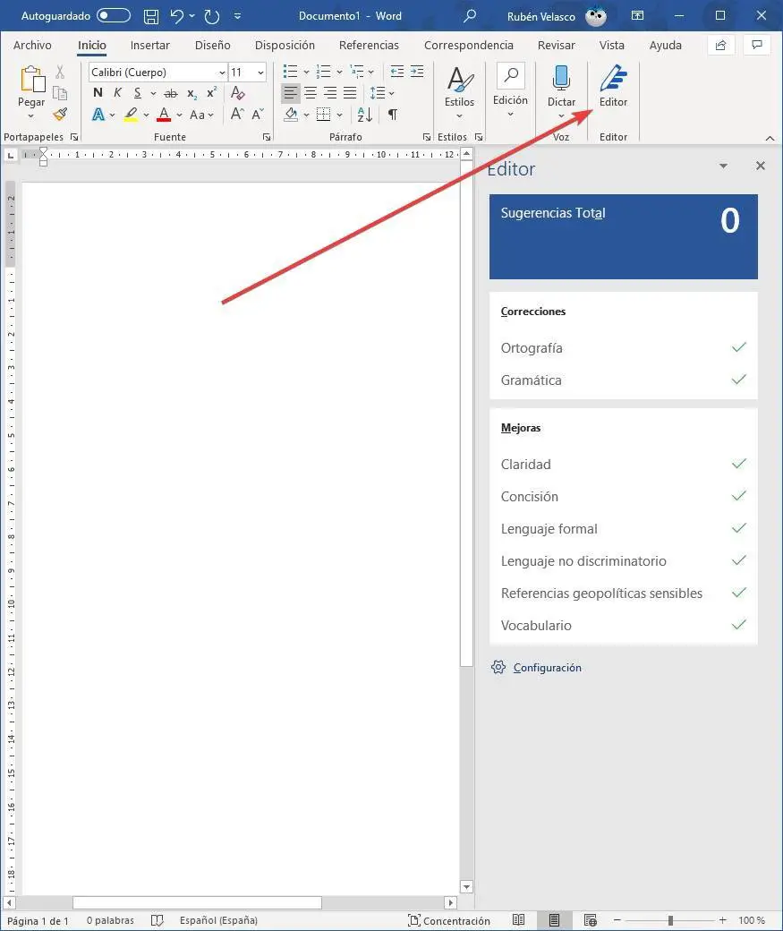 Si nous avons Office 365 et que nous avons installé la suite Microsoft sur notre ordinateur, Microsoft Editor sera disponible et activé par défaut. Si nous ne sommes pas des utilisateurs de la version Office 365, alors nous ne pouvons profiter que du vérificateur basique et simple de Word, celui habituel.