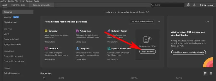 Lorsque nous parlons de l’application Adobe Acrobat Reader , nous nous référons en fait à l’une des solutions les plus connues et les plus importantes pour ces fichiers . Ce n’est pas en vain que la firme Adobe est propriétaire du format dont nous parlons ici. Dites que c’est un programme que nous pouvons télécharger à partir de ce lien pour l’utiliser sur le PC.