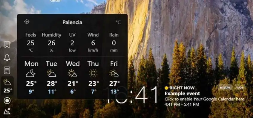 Parmi de nombreuses autres fonctions et fonctionnalités, cette extension nous permet d’activer un plugin qui nous permet de voir la météo actuelle et une brève prévision.