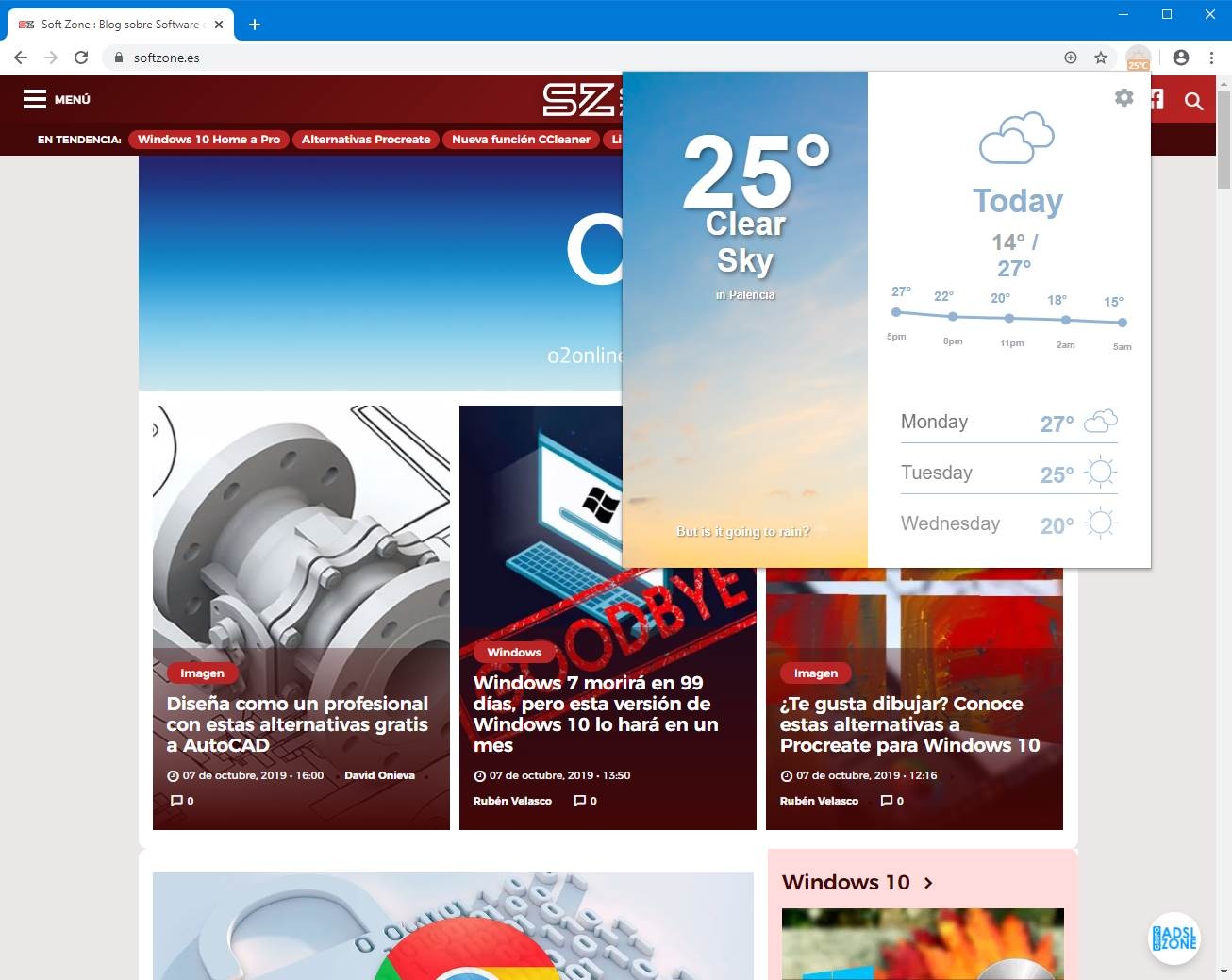 Une autre extension plus similaire aux précédentes pour voir les prévisions météorologiques est Weather for Chrome. Cette extension est capable de détecter notre emplacement physique et, en cliquant sur l’icône, de vérifier les prévisions météorologiques que nous allons avoir dans une fenêtre flottante.