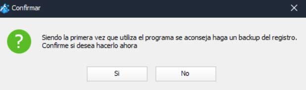 À ce stade, nous vous dirons que si vous souhaitez essayer ce programme dont nous vous avons parlé, vous pouvez le télécharger gratuitement à partir de ce lien . De plus, par mesure de sécurité, rien pour installer Wise Registry Cleaner pour la première fois, un message qui nous incite à faire une copie de sécurité du registre en tant que tel.
